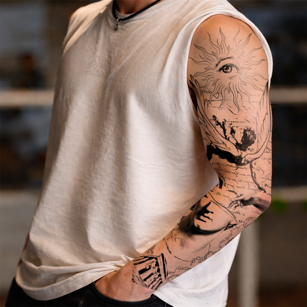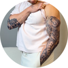 Nuestros nuevos tatuajes de manga no solo son los más grandes y detallados del mundo, sino que también fueron desarrollados junto a un auténtico tatuador: perfectamente adaptados al brazo, con motivos significativos, tal como se realizan los verdaderos tatuajes de manga.